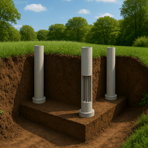 Фундамент на буронабивных сваях — это надежное решение для сложных грунтов и участков с перепадами высот. Он подходит как для маленьких, так и для просторных объектов. Ниже описаны основные этапы устройства фундамента на буронабивных сваях с ростверком, которые мы осуществляем с соблюдением СНиП и современных инженерных норм.