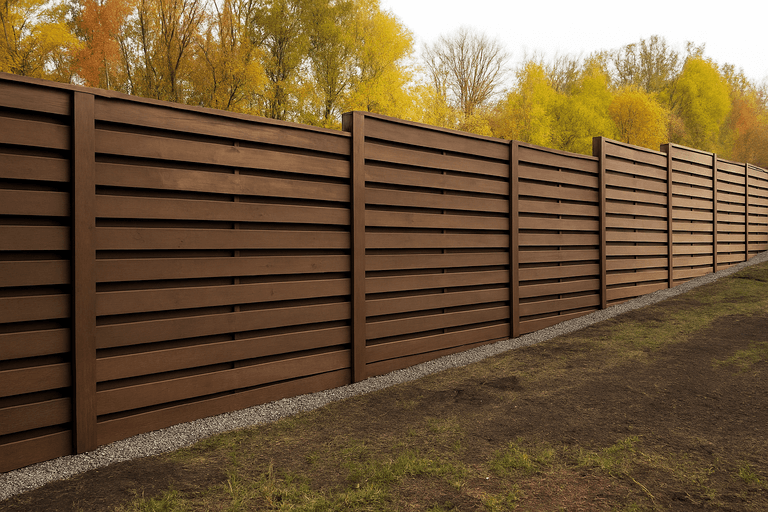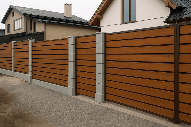 Все элементы покрываются краской или защитной пропиткой. Устанавливаются декоративные элементы, накладки, верхние планки. При необходимости — калитка и ворота.