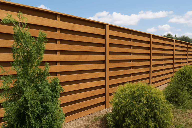 Определяется тип забора: штакетник, горизонтальный или вертикальный профиль, сплошной или с зазорами. Для долговечности используется сухая древесина хвойных пород, обработанная антисептиками и защитными составами. -